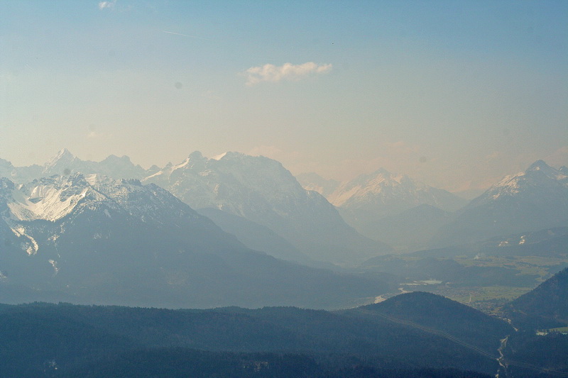...auf's Karwendel, Wettersteingebirge und Herzogstandhaus hinunter.