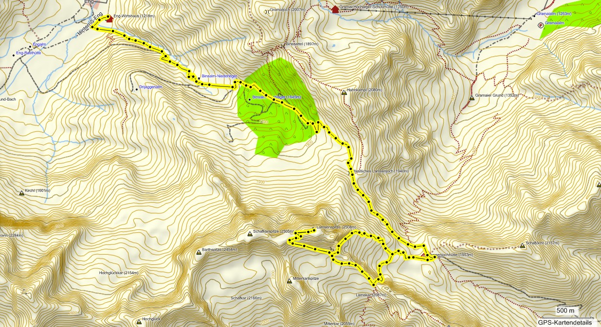 Gramaier Grund auf die Lamsenjochhütte hochsteigen. Der Weg ist ca. eine halbe Stunde